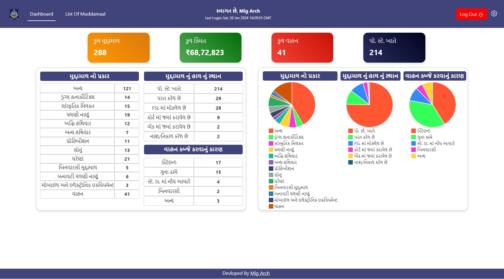 See Total Number of Muddamaal present at Police Station.