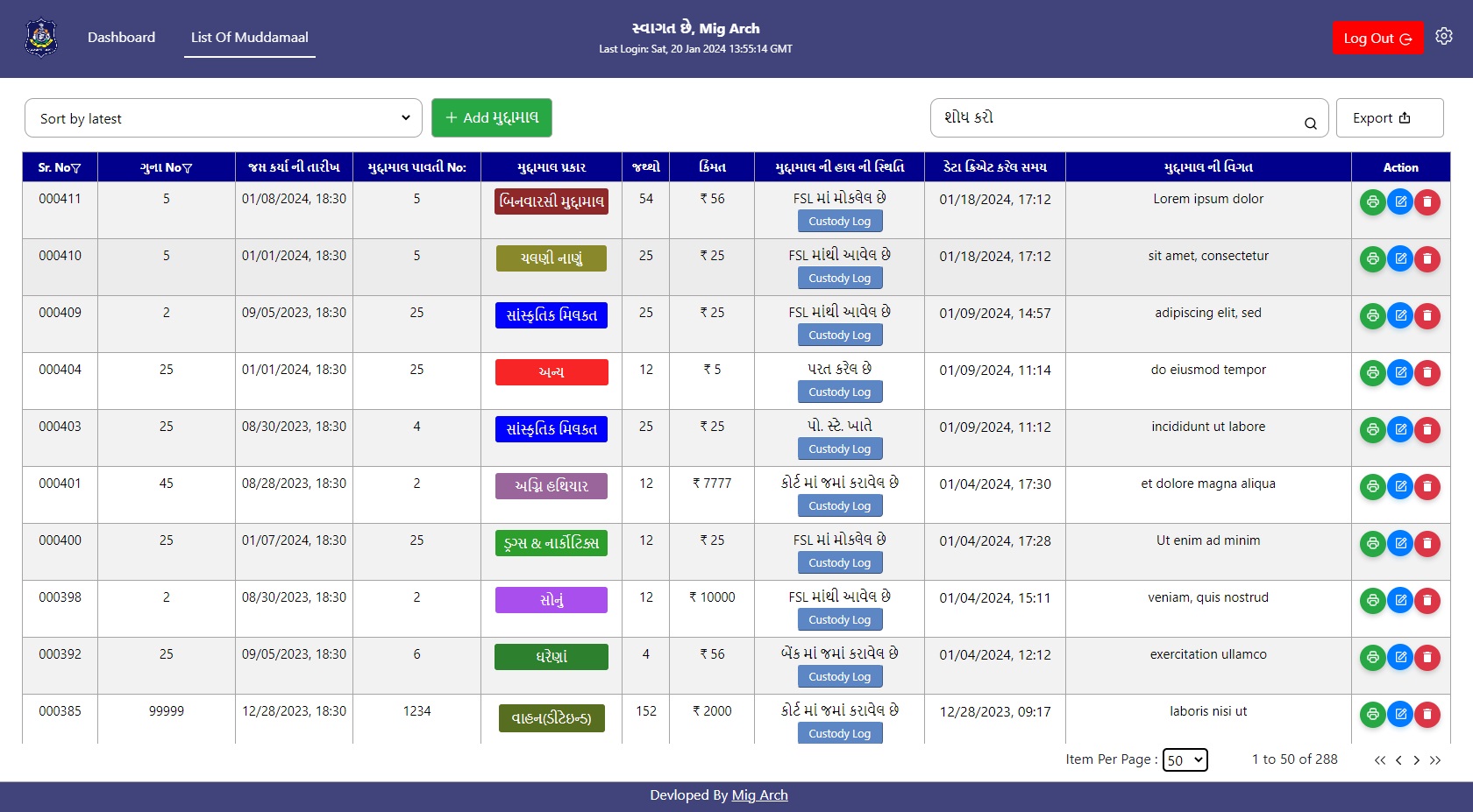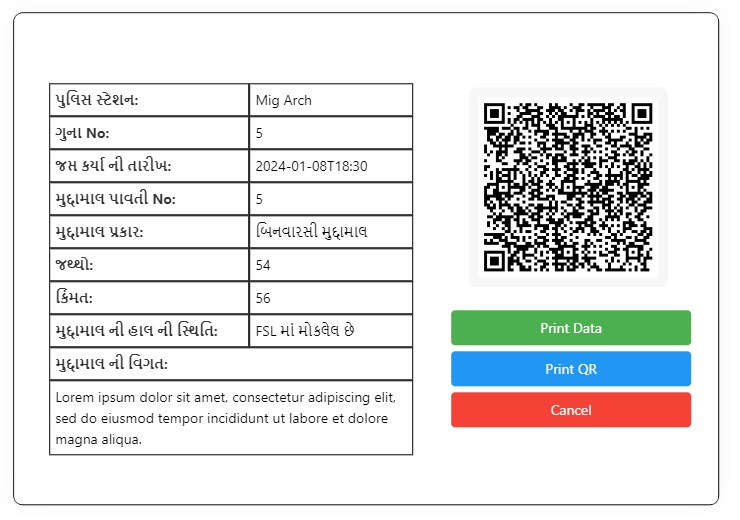 Simplify muddamaal management effortlessly with this secure, Gujarati-language web app. Input, generate QR codes, and print with ease. Transparent logs and secure status updates included.